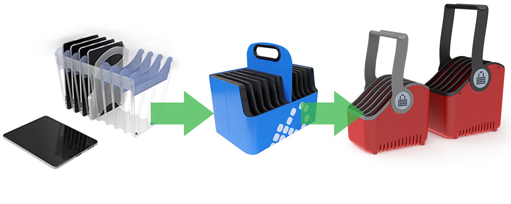 Once more, this was great for tablets, but the arrival of Chromebooks soon made obvious the need for a basket that would work with 11”-13” notebook style devices. We think you can see where this is going: a new basket was designed!
