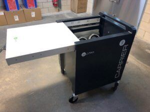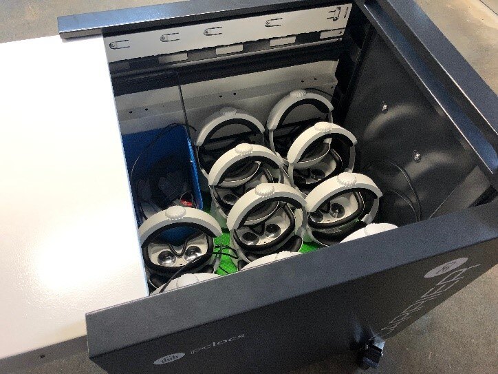 At the outset of the project the organisation had no formal mobile device program. As they began planning their device deployment workflow, storage of the VR headsets was an immediate concern. Initially, they attached the devices to a mobile tool trolley; however, they quickly realised the importance of charging and mobility to meet their needs. Because the headsets would travel to different campuses, secure transportation was key to meeting the high demand for training across the state.